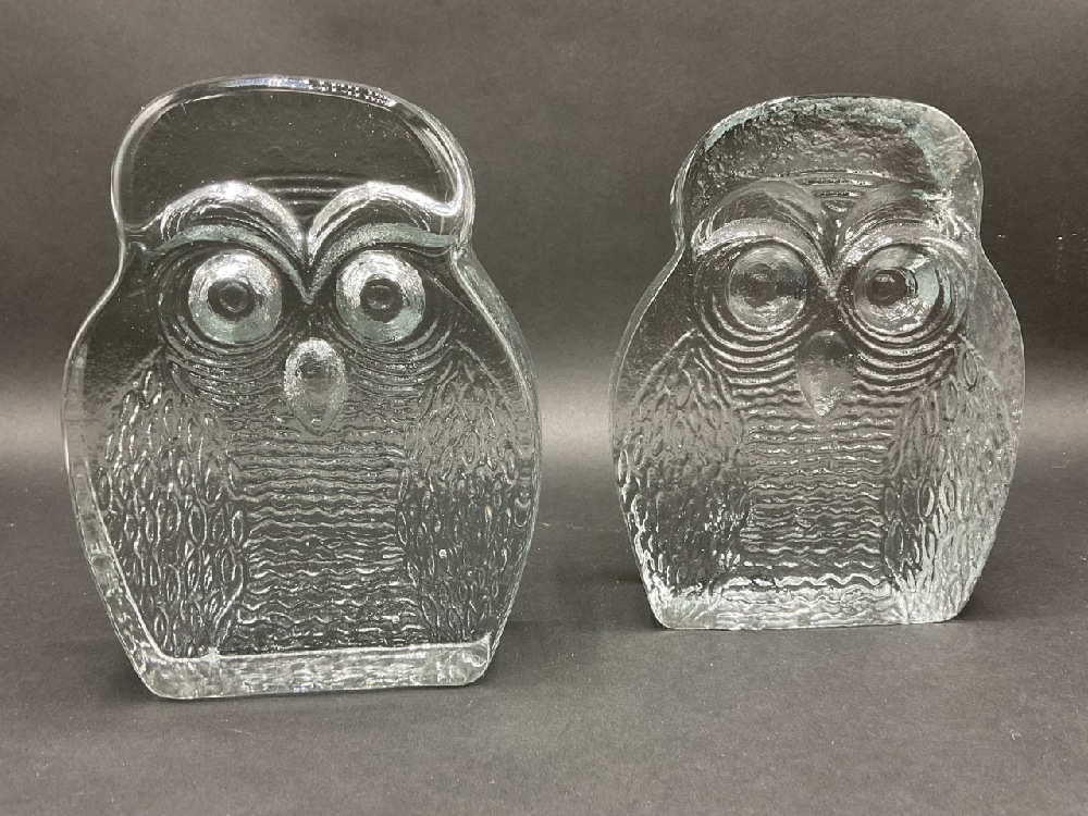 Blenko Glass Co. 1960’s Glass Owl Bookends.