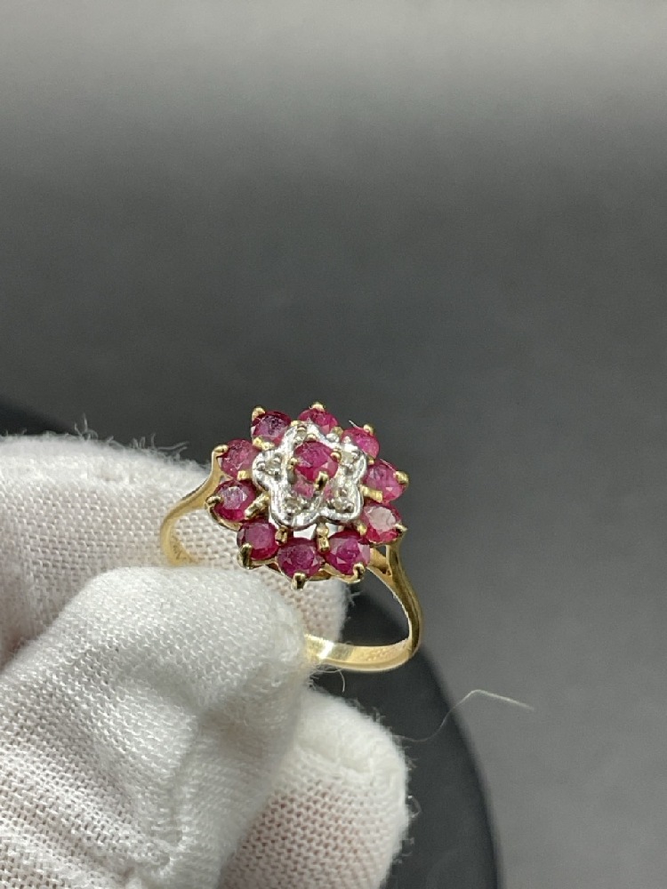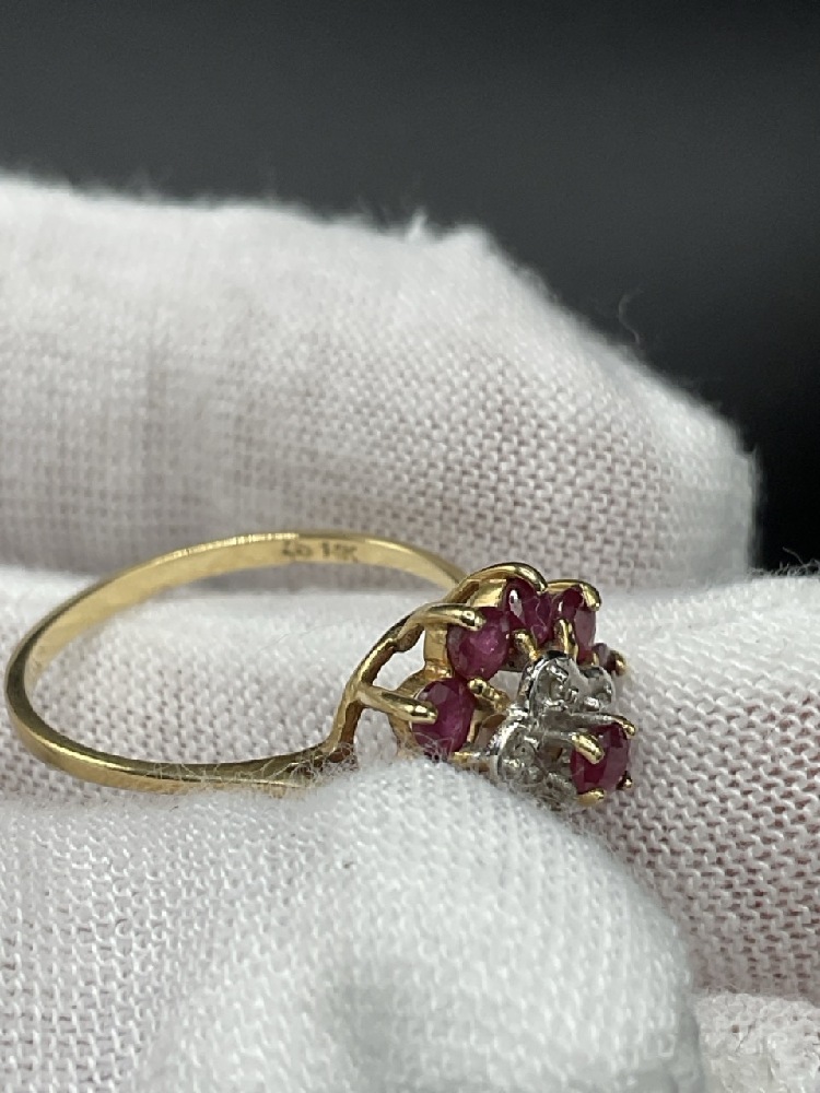 14K Yellow Gold Ruby and Diamond Ring.
