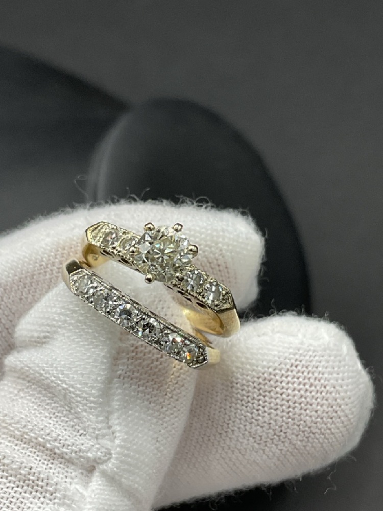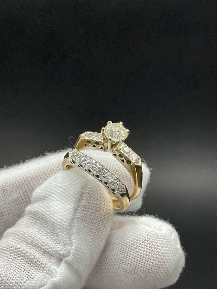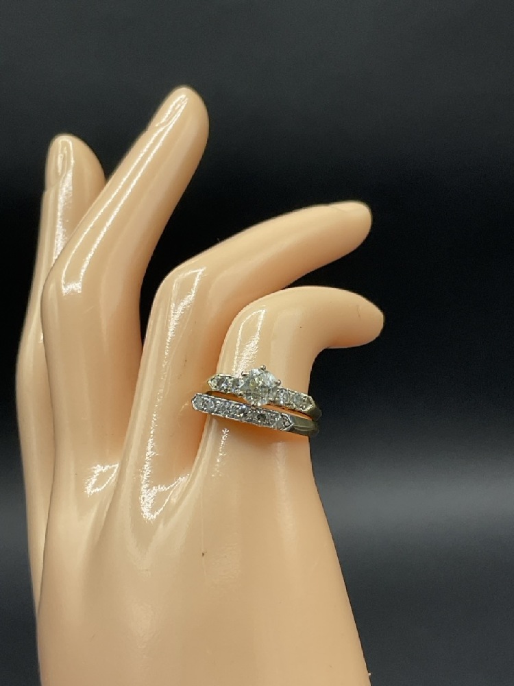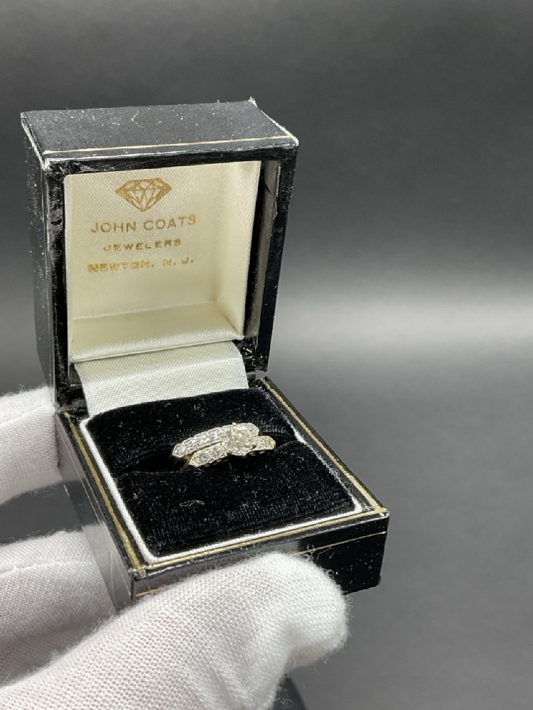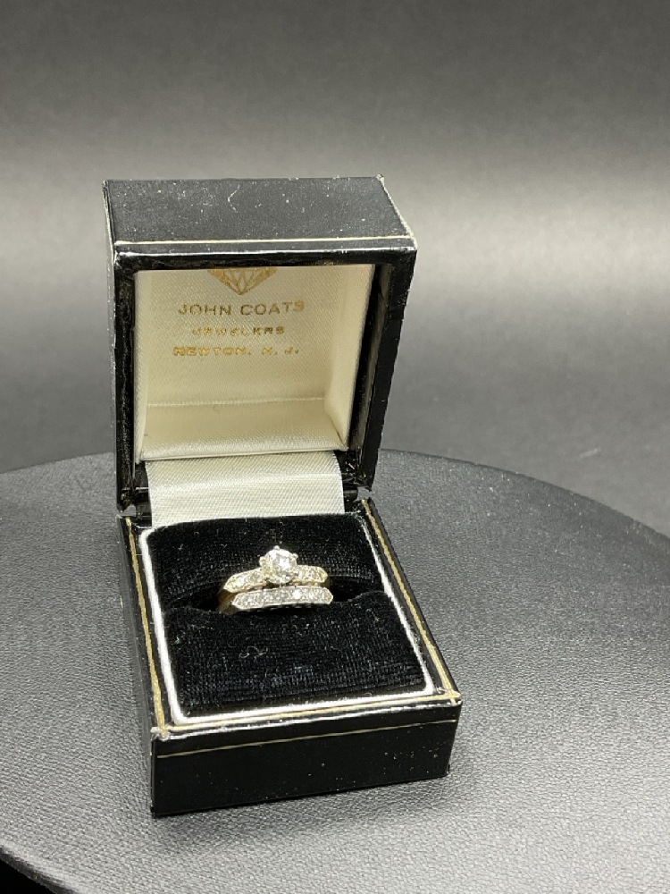14K White Gold Diamond Engagement Ring and Band.