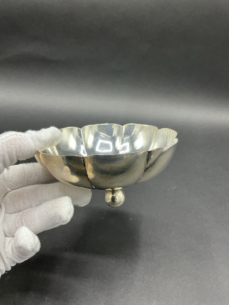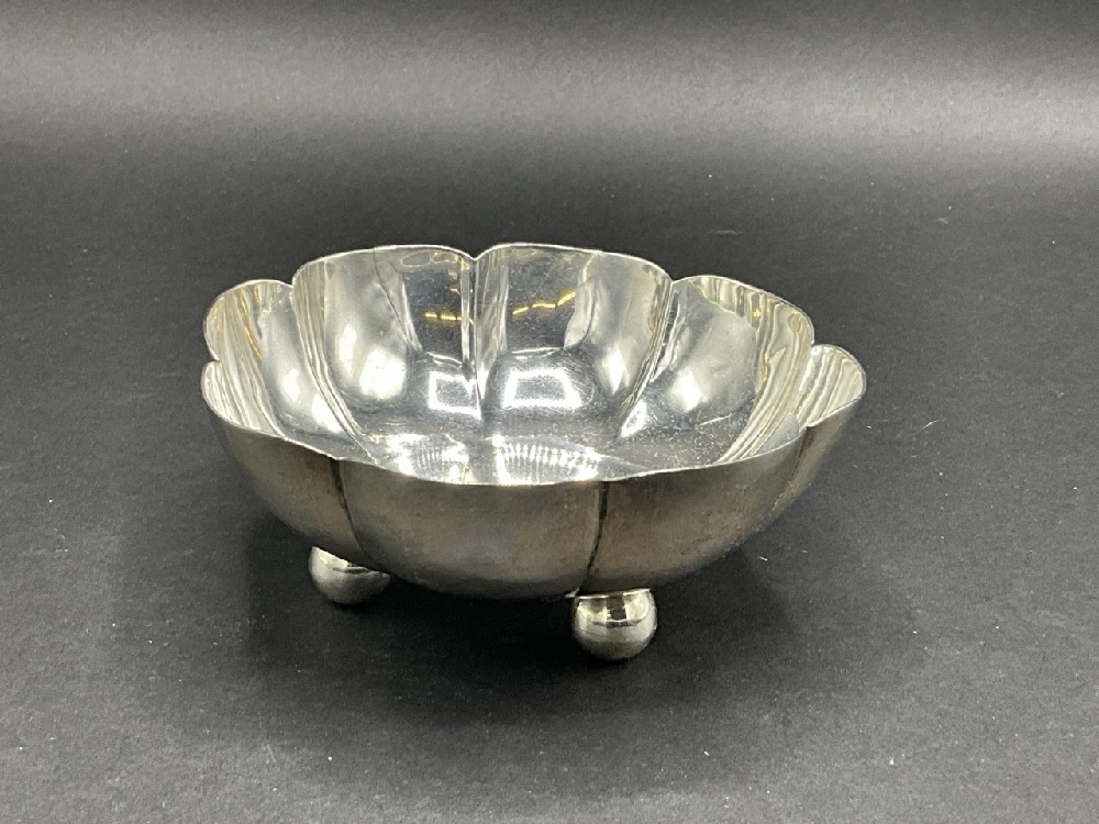 JGP Mexican Sterling Silver Scalloped Footed Dish.