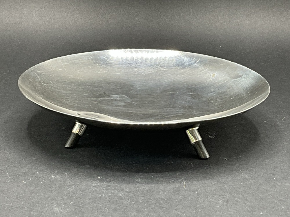 Reed & Barton Mid Century Modern Footed Sterling Silver Bowl with ebonized wood feet.