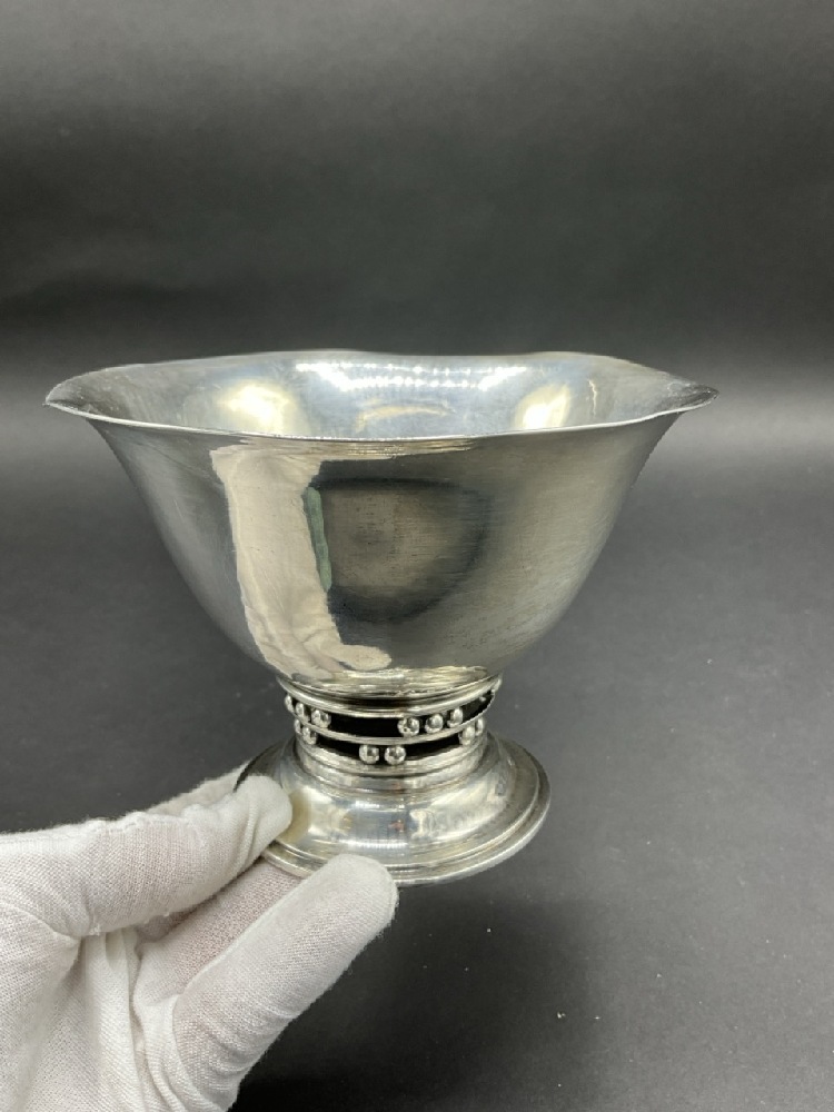 George Jensen Sterling Silver #364 Pedestal Serving Bowl. Rim edge denting noted. Please see photograph preview.