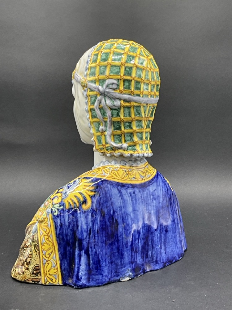 Angelo Minghetti, Bologna, Italy, Signed Majolica Renaissance Bust.