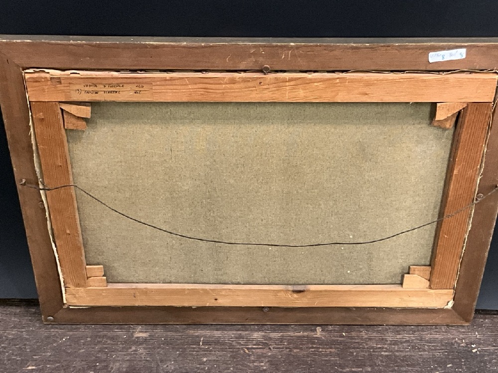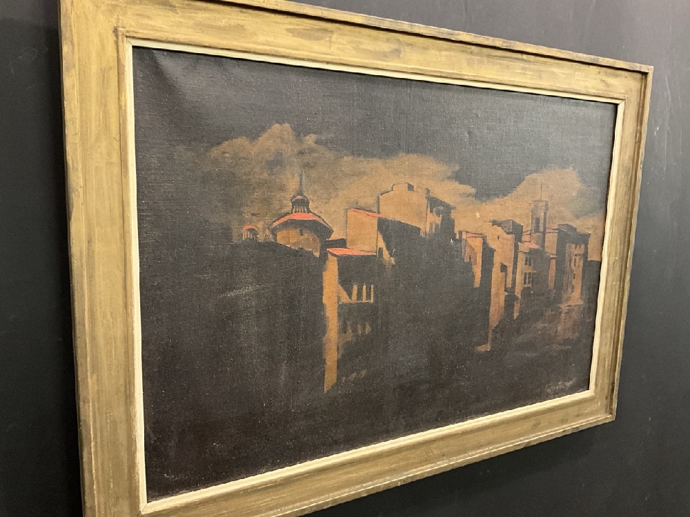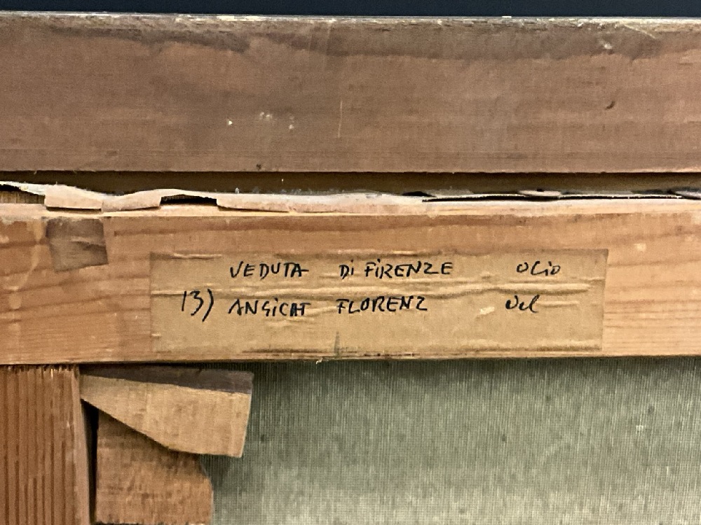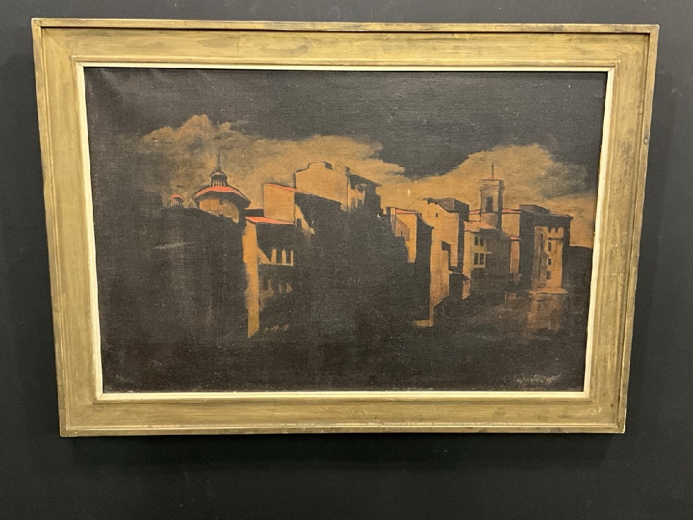 Along the Arno, Florence by Moonlight. Oil on canvas. 1st half 20th century. Illegibly signed verso. Dimensions: 15” x 23” and 19” x 27”