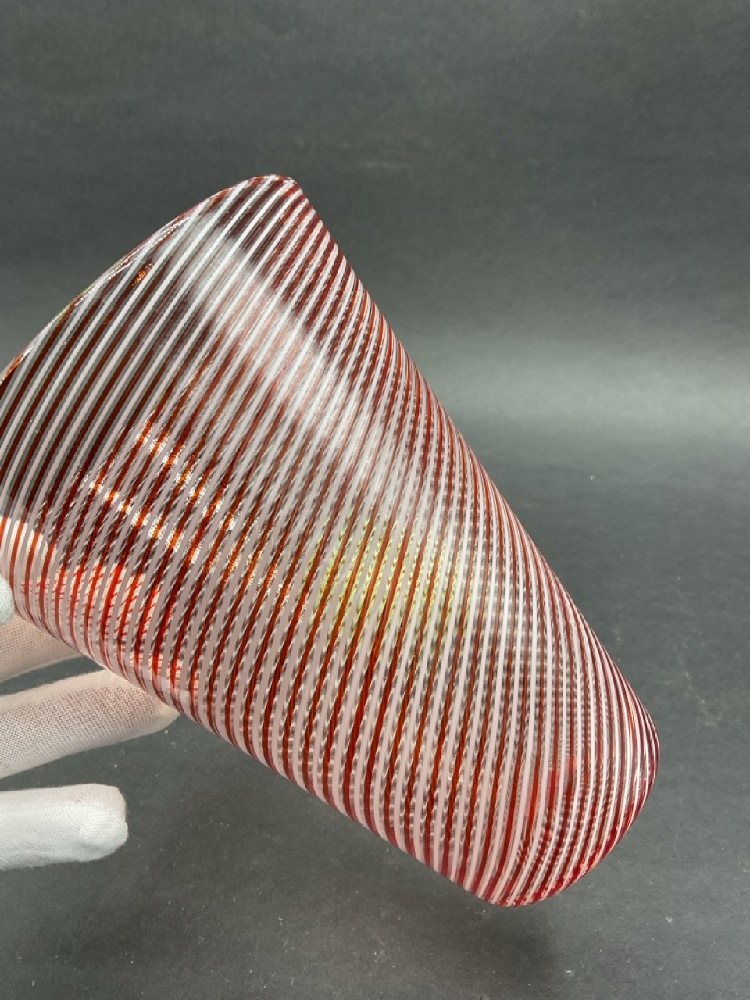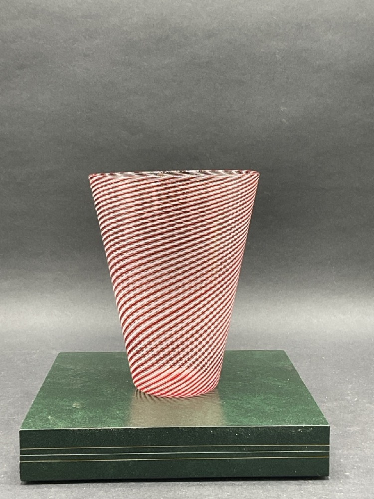Vintage Mide Century Murano Red/Pink Vintage Swirl Glass Vase.