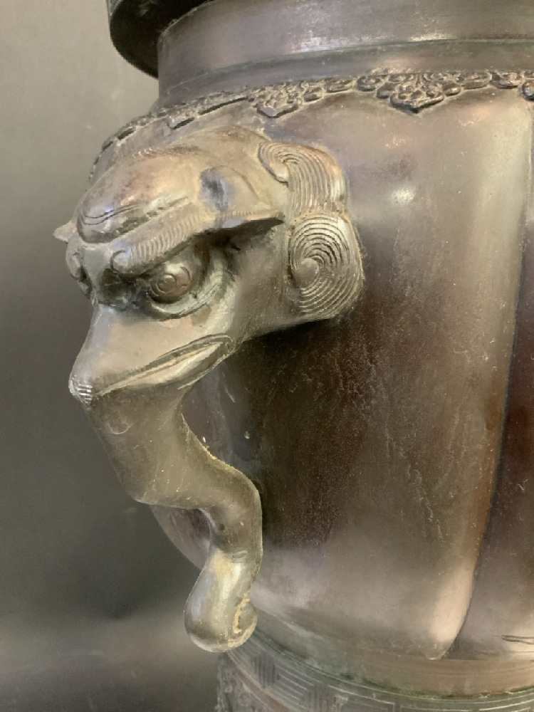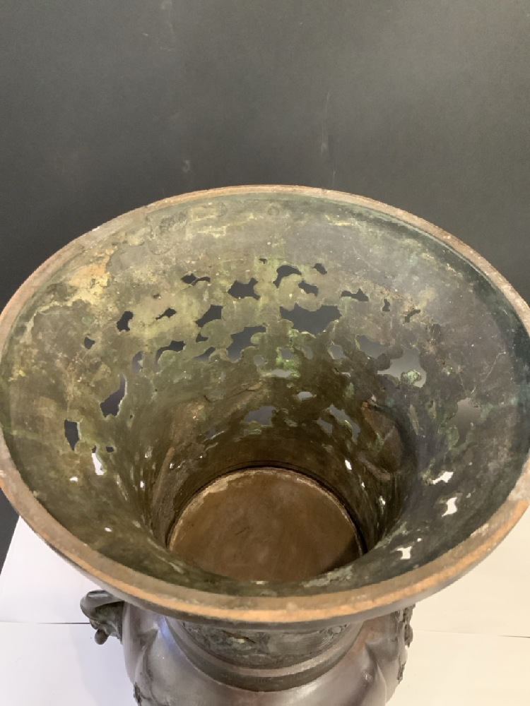 Japanese Meiji Period Bronze Urn Signed Tenko Fujiwara.