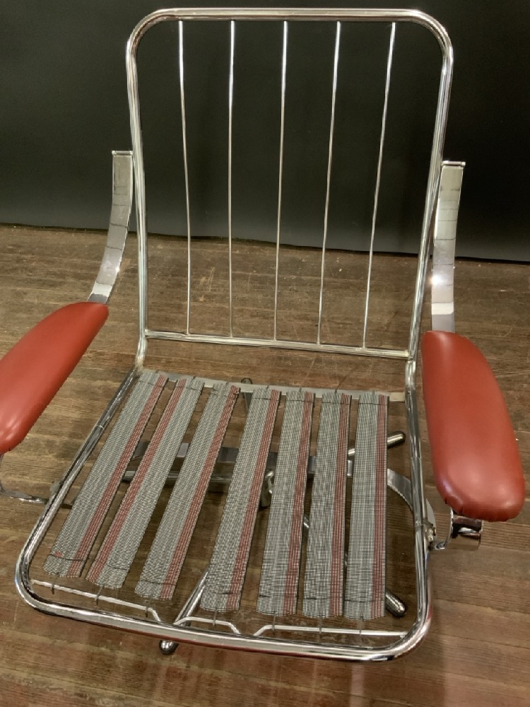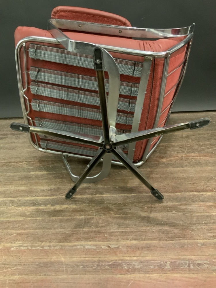 Vintage MCM Chrome and Red Leather Arm Chair.
