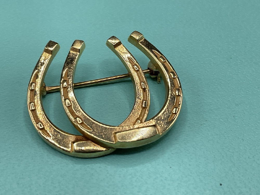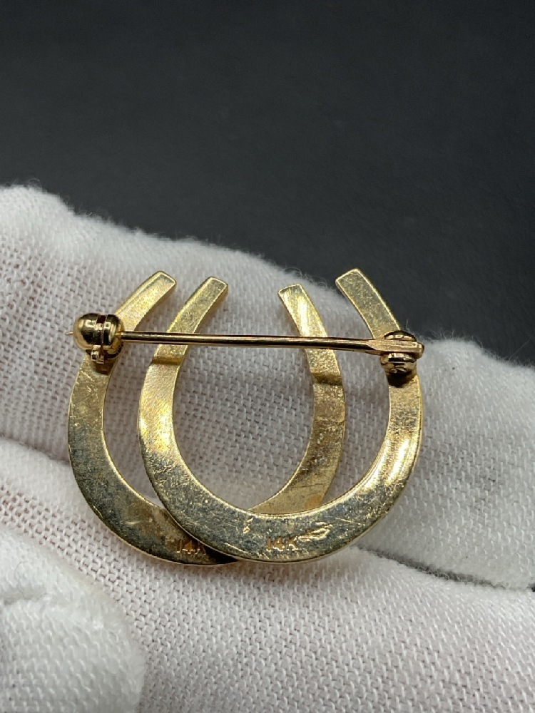 14K Yellow Gold Lucky Double Horseshoe Pin.
