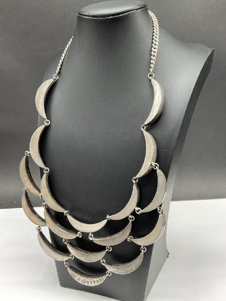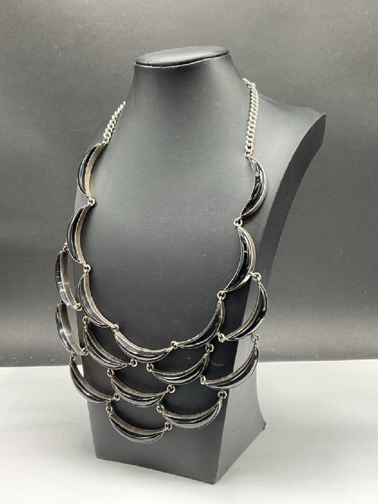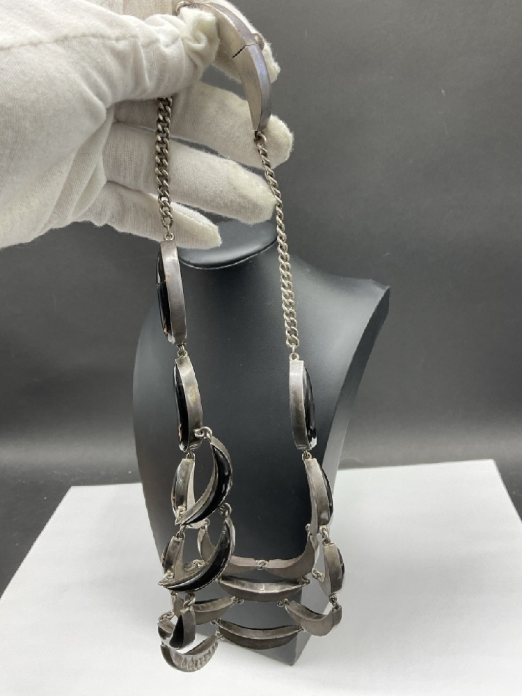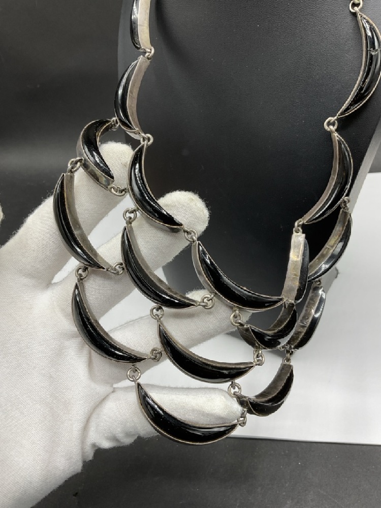 Vintage Antonio Pineda Mexican Taxco Sterling Silver Onyx Necklace.