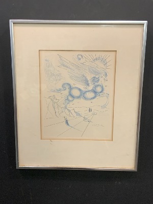 Salvador Dali "Pegasus in Flight" Lithograph Print. Dimensions: 11” x 9” and 18” x 15” Framed.
