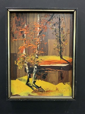 Morris Katz (American, 1932-2010) Untitled: Cabin in woods. Acrylic on Board Dated:1980. Dimensions: 15 1/2” x 11” and Framed 13” x 17”.