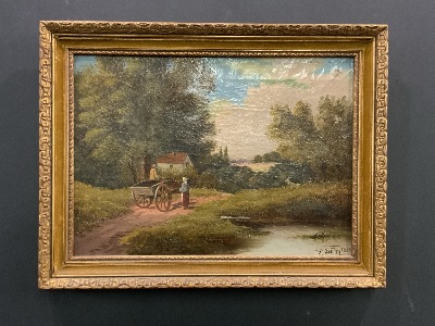 Etty Horton (British, 1835-1905) Untitled: Country Landscape. Signed E. Horton, lower right. Oil on Canvas Dated:1853 Dimensions: 9 3/4” x 13 3/4” and 13” x 16 1/2” Framed.