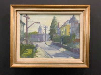 Harold Wolpoff (MA, 1924-2013). Street Scene. Oil on Canvas. Dimensions: 11” x 15” and 16” x 20” Framed.