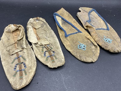 Two (2) Pairs 19th Century Indian Male Moccasins. Very poor condition. Please see photograph preview.