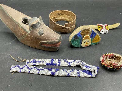 Estate Compiled American Indian Objects. Early beadwork bowl being noteworthy. Please see photograph preview.