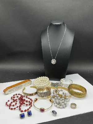 Compiled Costume and Sterling Silver Jewelry Lot.