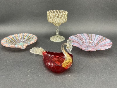 Vintage Murano Glass Lot. Dimensions: Lg - 4” x 2 1/2” Sm - 1/2” x 4”