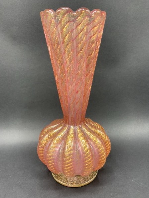 Ercole Barovier & Toso Murano Cordonato D’ oro Vase, circa 1950s. Dimensions: 9 1/2” x 4 1/2”