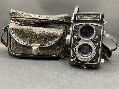 Vintage Rollei Rolleicord Twin Lens Camera w/ Extras. Franke & Heidecke. Dimensions: Case - 5 1/2” x 8” x 6”