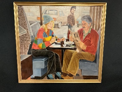Murray "Schwimmer" Papell (American, 1924-2017) Oil on Canvas Dimensions: 48” x 36” and 53” x 42” framed. Murray "Schwimmer" Papell (American, b. 1924-2017) Native to Flushing, Queens. A WWII Veteran who began his art career drawing maps for intelligence during the war, Murray post WWII would become a criminal sketch artist for NYPD. During the 1970's and 80's his works became focused on people and places in the New York area especially Rockland Cty (New City, NY) where he resided. Selling the personal collection of his studio of works at auction January 5th, 2026 as part of his wife's estate.
