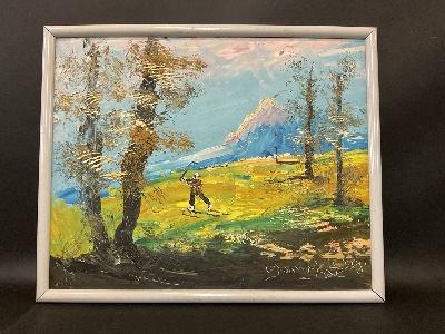Murray "Schwimmer" Papell (American, b. 1926-2011) Oil on Canvas Dated 2002 Dimensions: 25 1/2” H x 37 1/2” W framed. Murray "Schwimmer" Papell (American, b. 1926-2011) Native to Flushing, Queens. A WWII Veteran who began his art career drawing maps for intelligence during the war, Murray post WWII would become a criminal sketch artist for NYPD. During the 1970's and 80's his works became focused on people and places in the New York area especially Rockland Cty (New City, NY) where he resided. Selling the personal collection of his studio of works at auction January 5th, 2026 as part of his wife's estate.