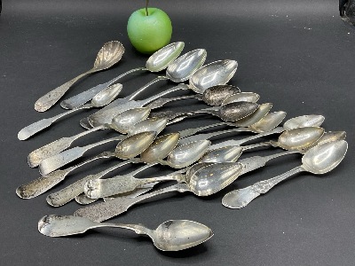 Compiled 19th Century American Coin Silver Spoons 900 Pure. Total weight: 445.4 grams.