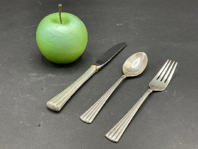 Cartier Sterling Silver Place Setting. Dimensions: 6 1/4” x 7 1/4” 76 grams plus 46.1 knife 122.2 grams