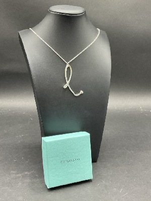 1983 Tiffany & Co. Elsa Peretti Sterling Silver Alphabet "E" Necklace. E is slightly bent. Please see photograph preview. Dimensions: 28” chain 2 1/4” Pendant.