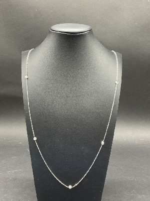 1980's 14K White Gold Long Length Necklace. Dimensions: 35” Total weight: 3.9 grams. Two small knots noted in chain. Not resolved at time of inspection.