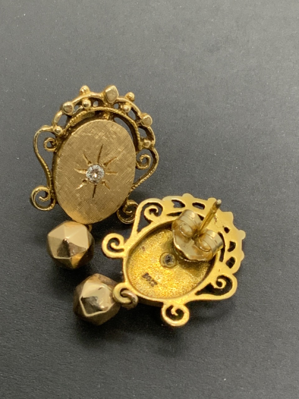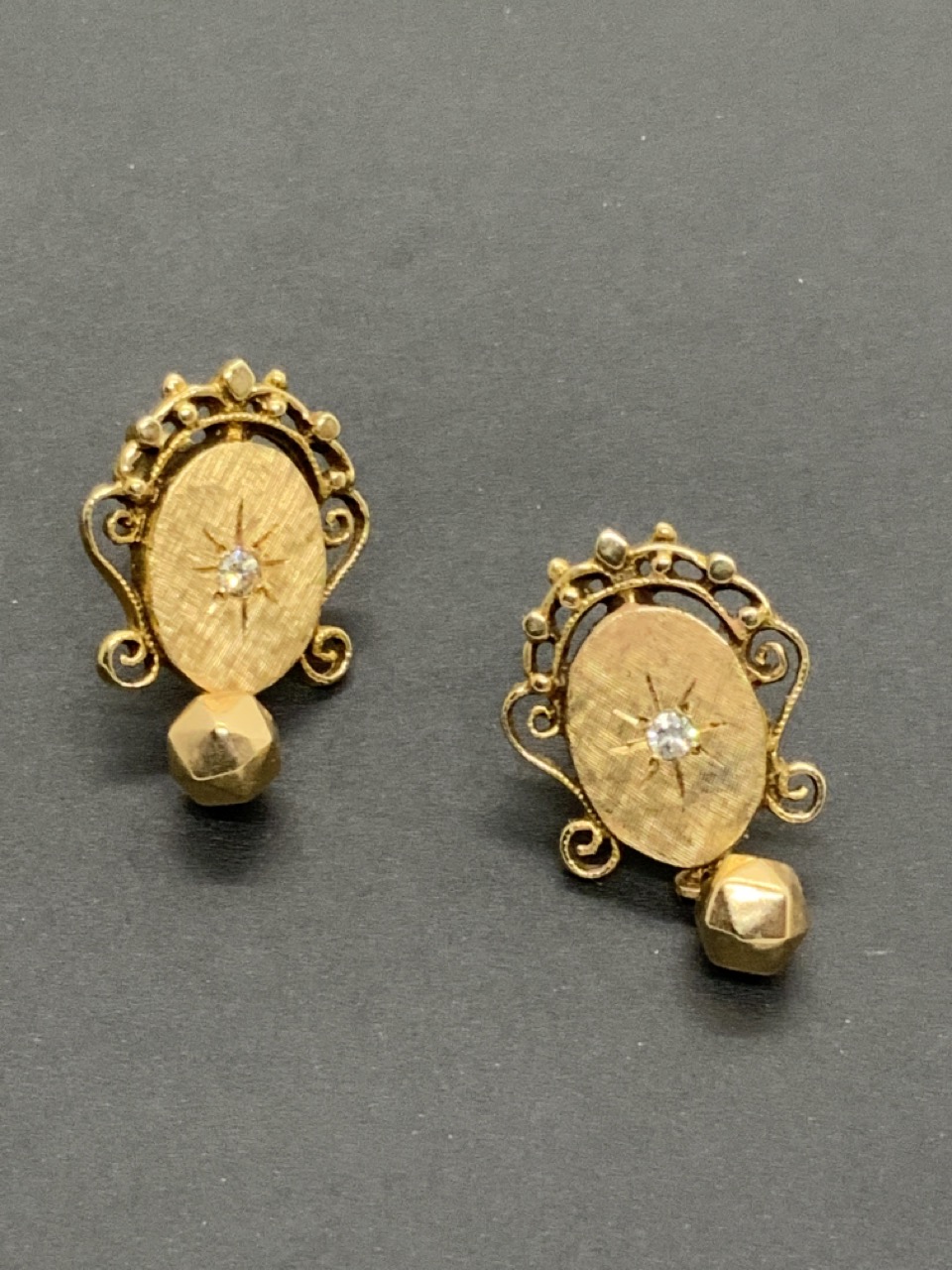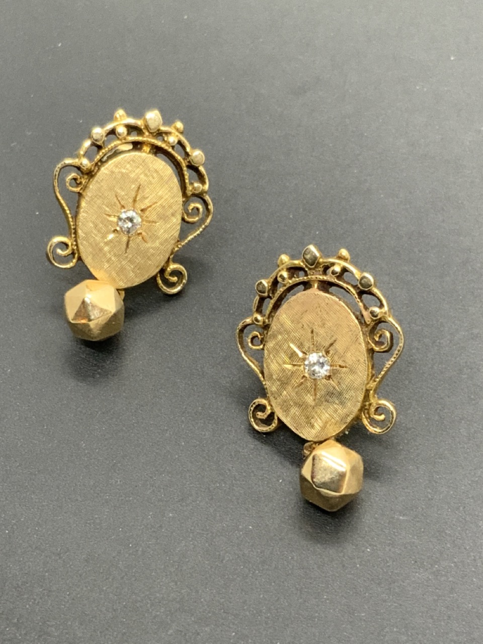 14k yellow gold Edwardian style diamond earrings. Pierced.