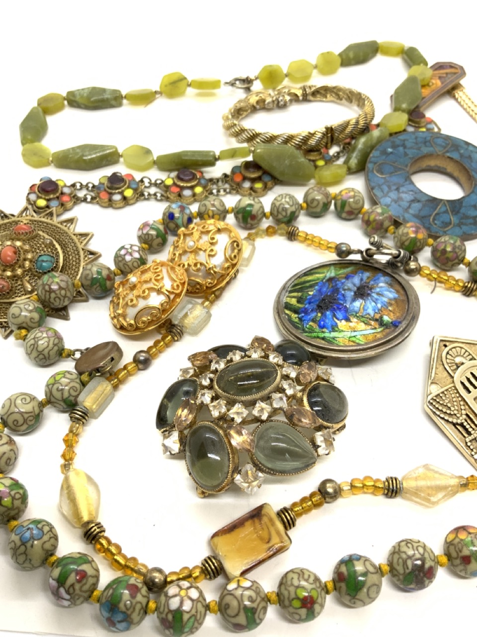 A compiled grouping of estate costume jewelry as seen in photograph preview.