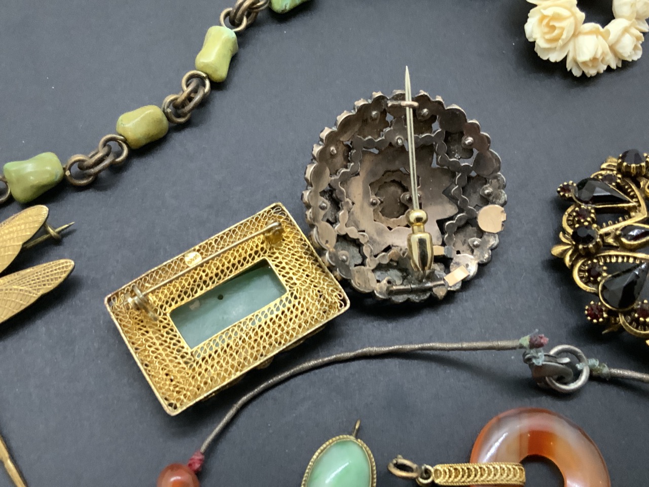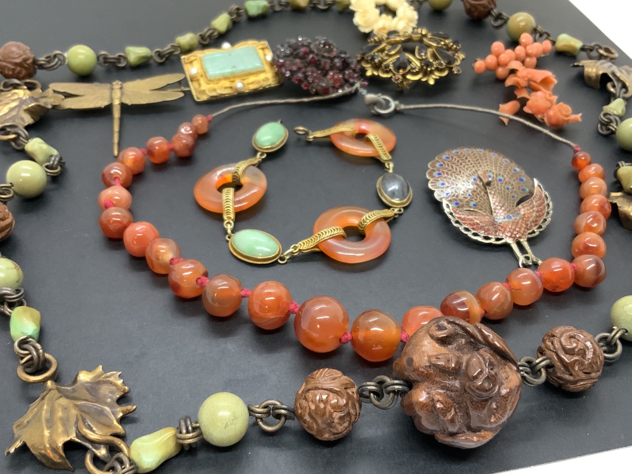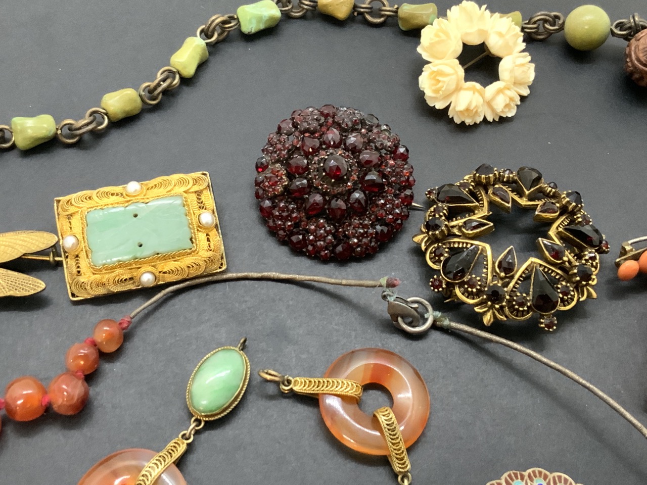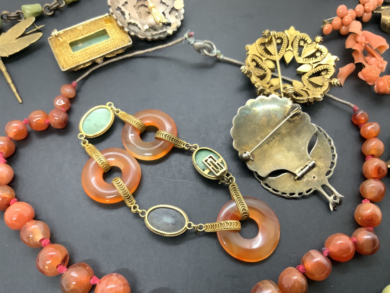 Assorted estate costume jewelry including mostly Chinese, Asian design. As seen in photograph preview.