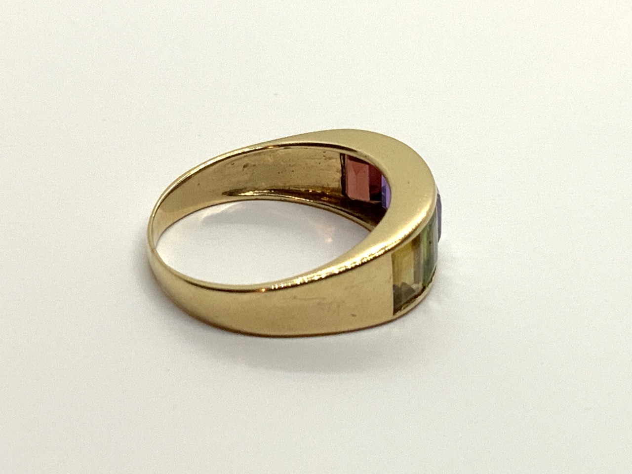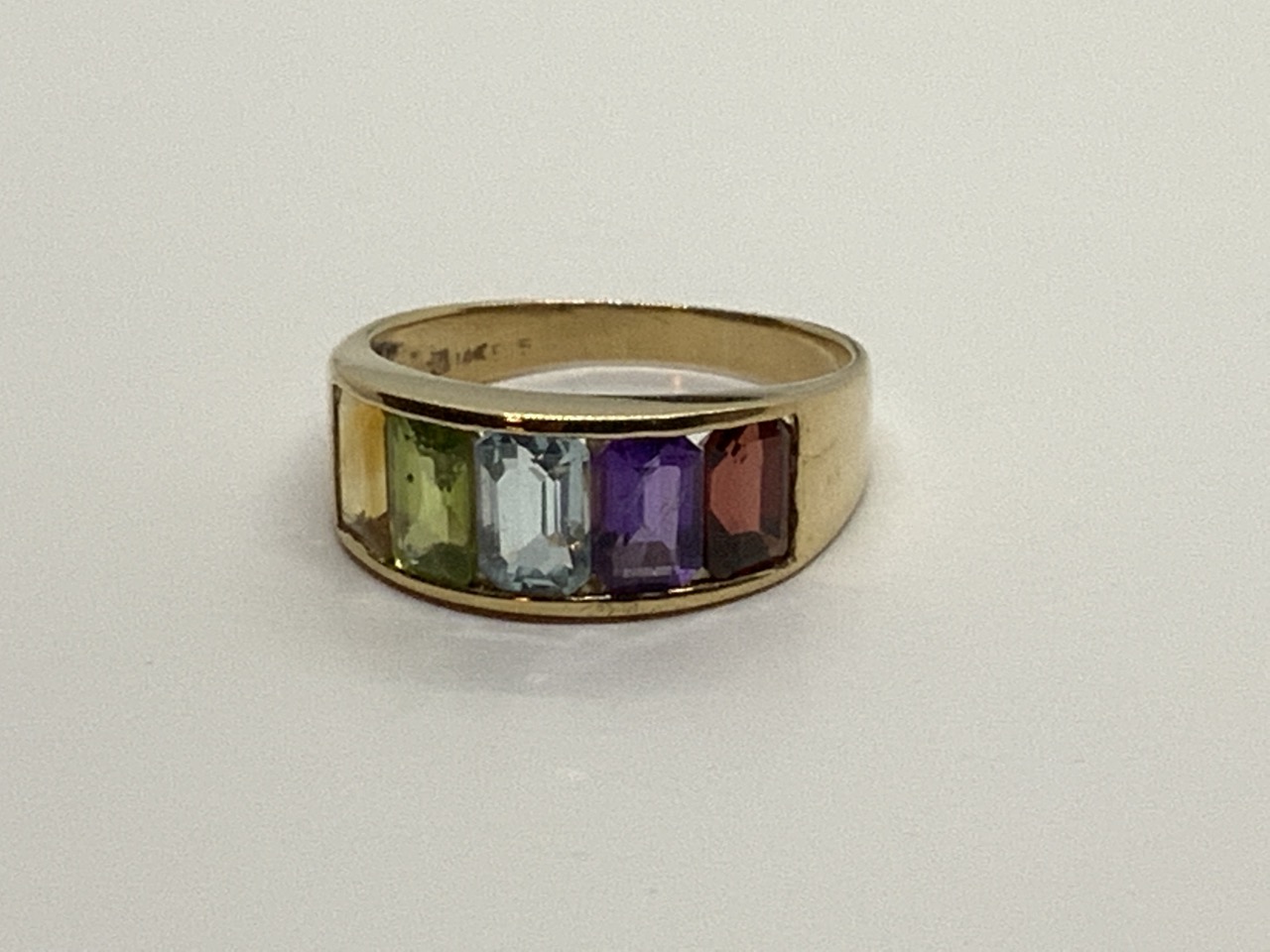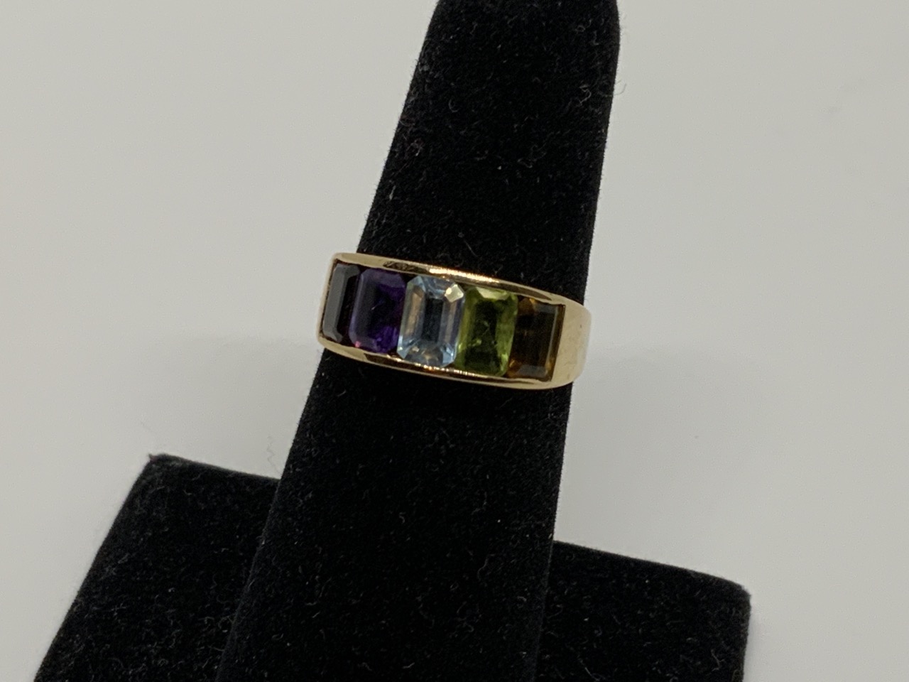 14k yellow gold multi-gemstone ring.
