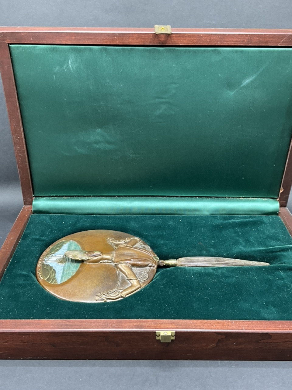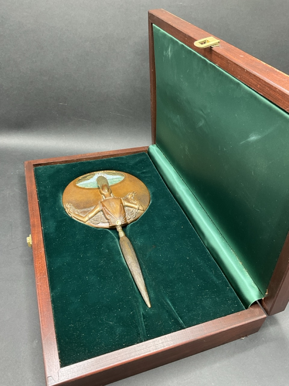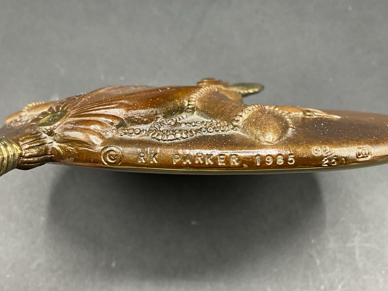 bronze handheld mirror. Edition being numbered 62/250. Dated: 1985.