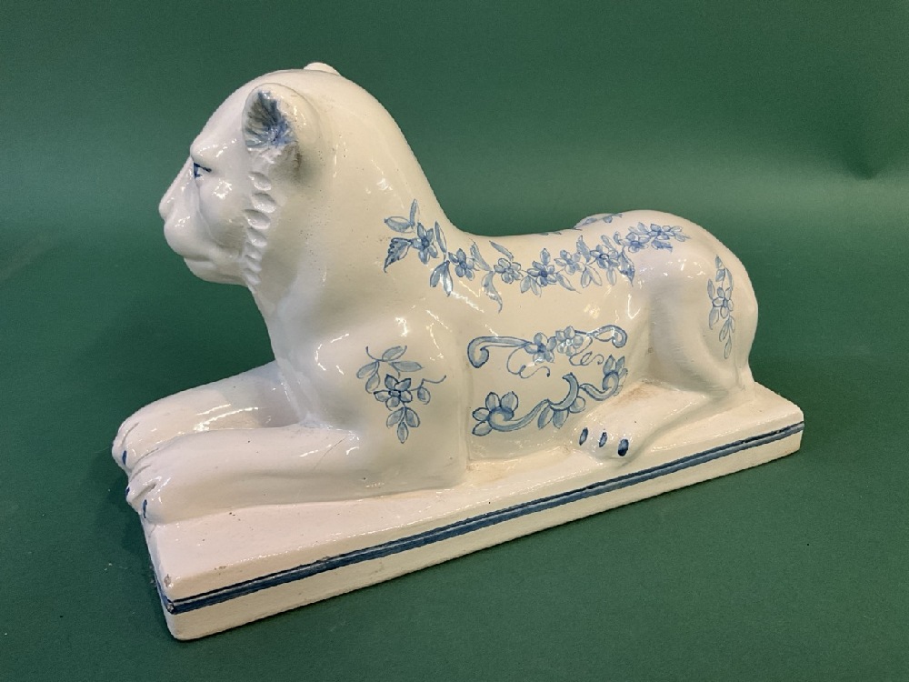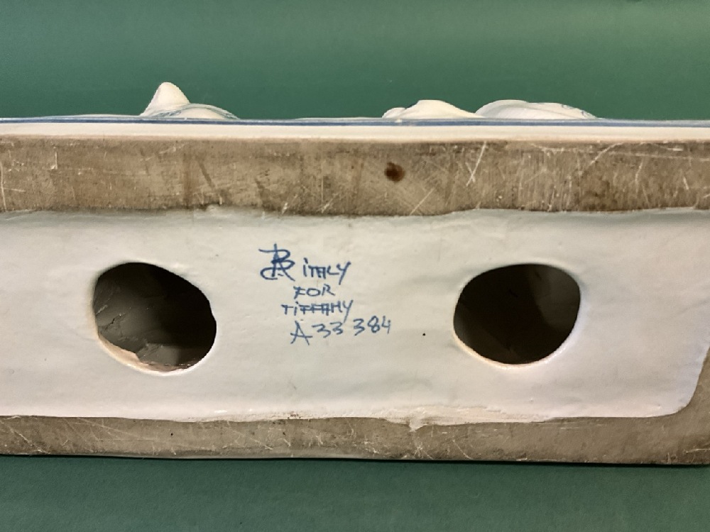 Tiffany & Co. Faience Style Ceramic Seated Lion Statue. 20th Century, Made in Italy. Dimensions: 6 1?2" X 10” X 4.