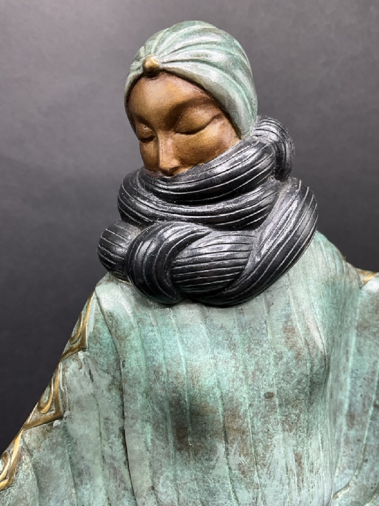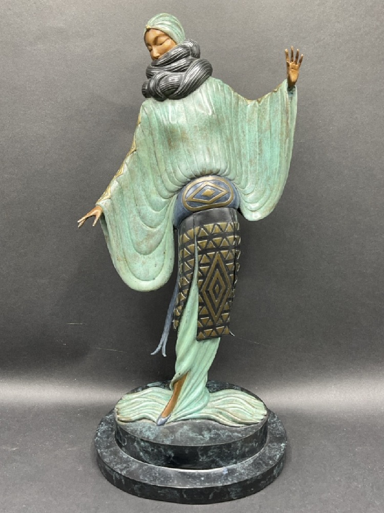 Erte (1892-1990) “An Evening in 1921” cold painted bronze sculpture. Numbered edition 9 of 250. Dated 1980.