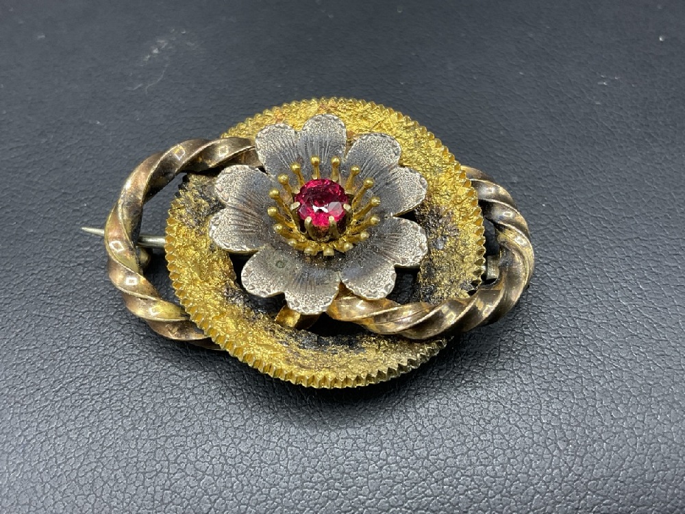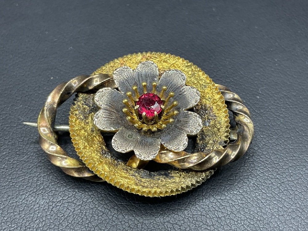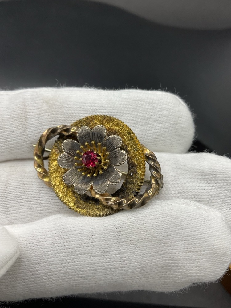 10K Gold Victorian Pin with Pink Stone. Dimensions: