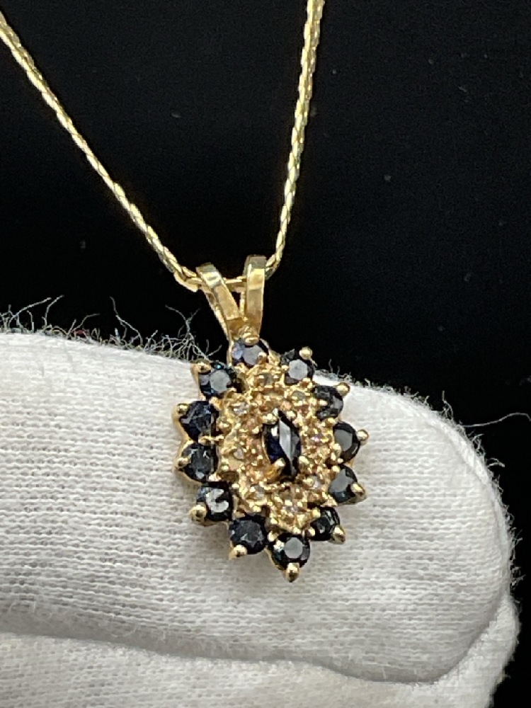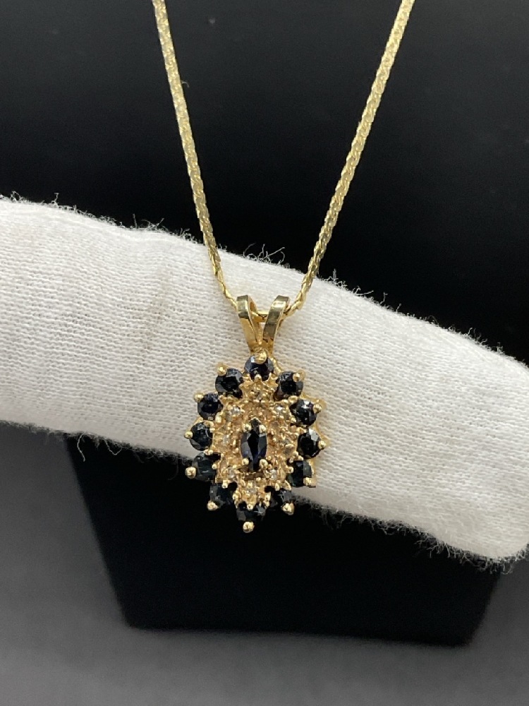 10K Gold Blue Sapphire Pendant and 14K Necklace. t.w: 5.58 grams.