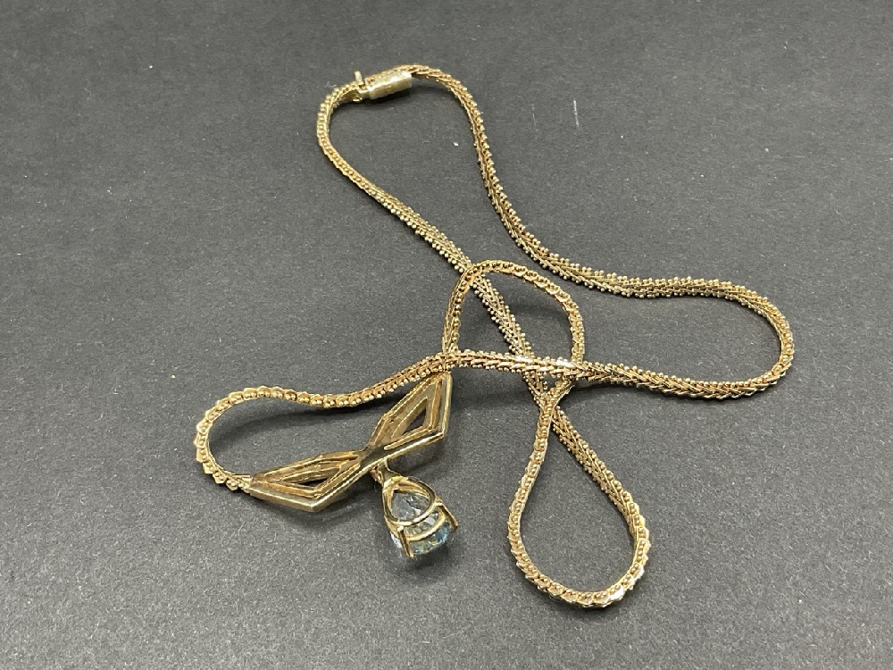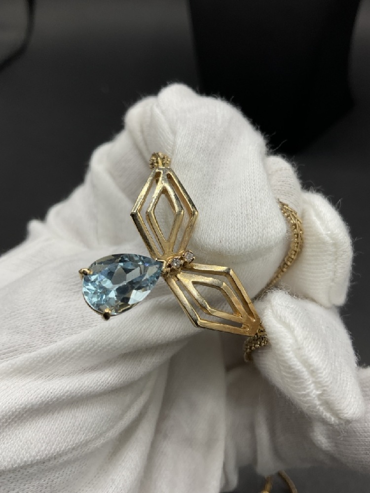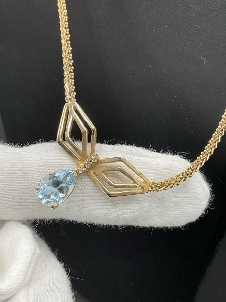14K Yellow Gold Aquamarine and Diamond Necklace.