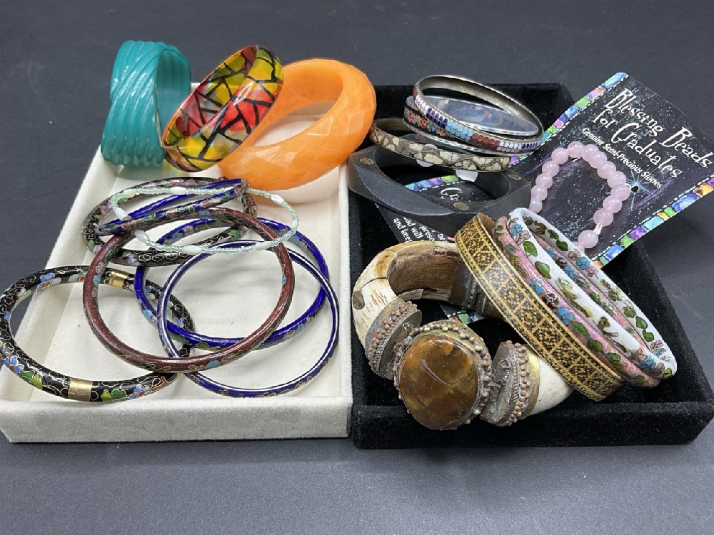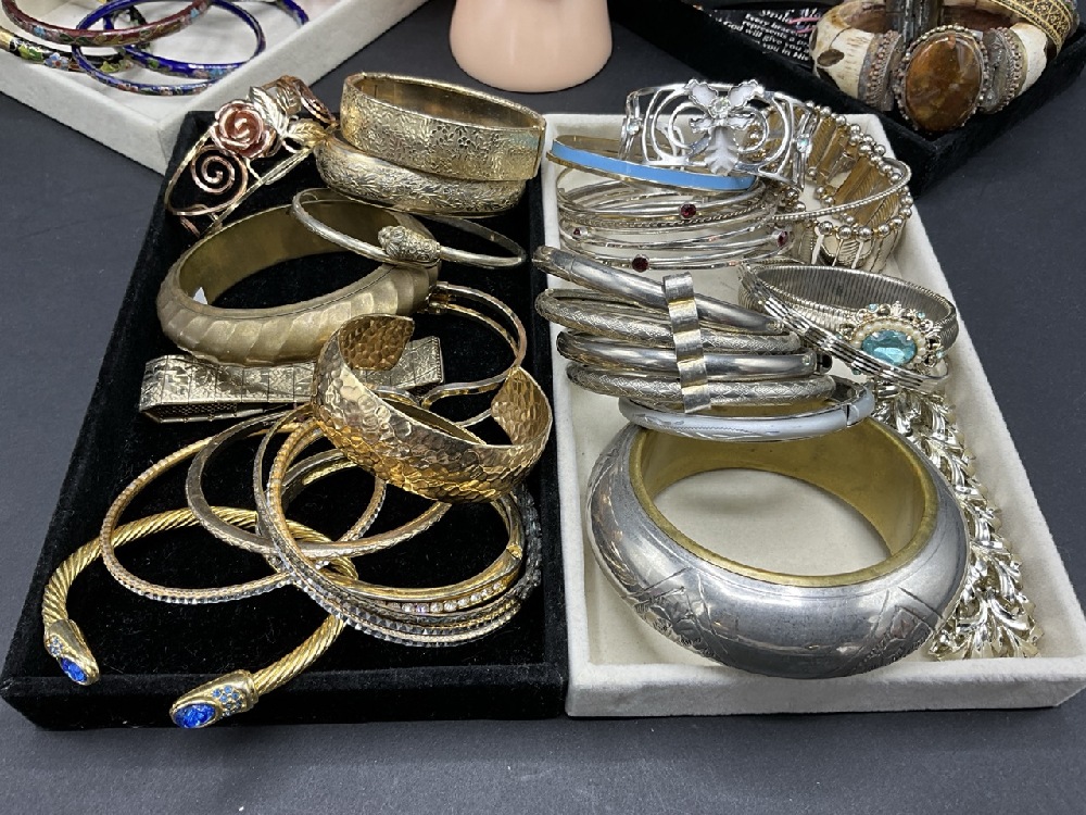 (55) Vintage Costume Jewelry Bracelets - Krementz, Trifari, Coro, Sarah Cov, Monet.