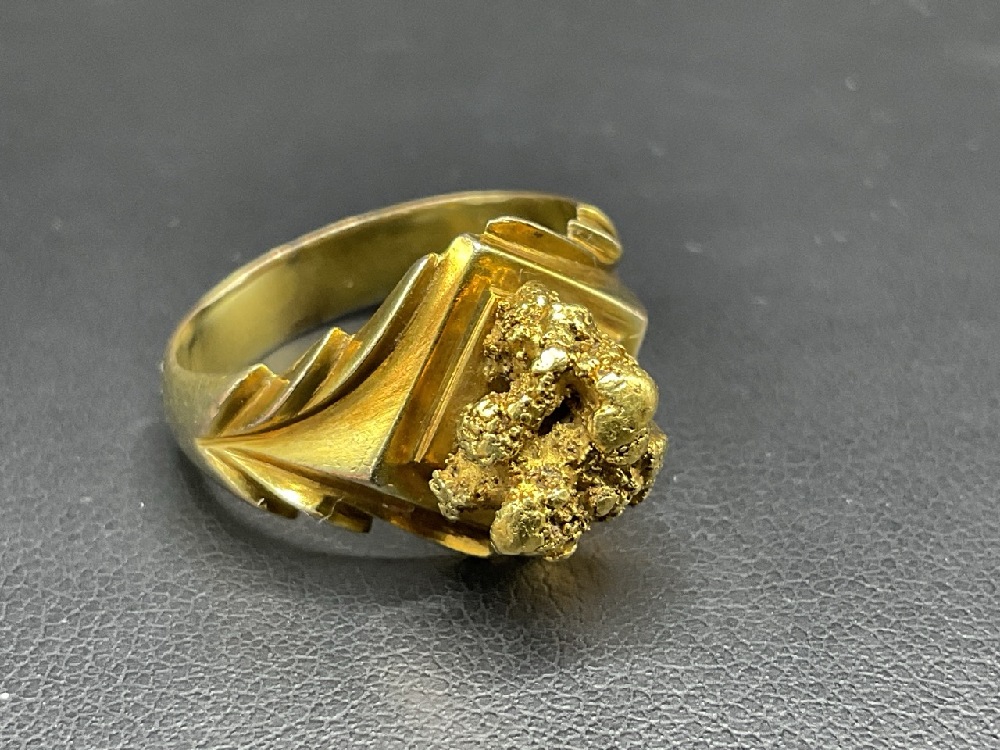 18K Yellow Gold “Nugget” Ring. Size 8 t.w:. 9.26 grams.