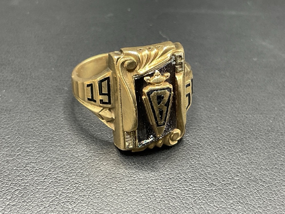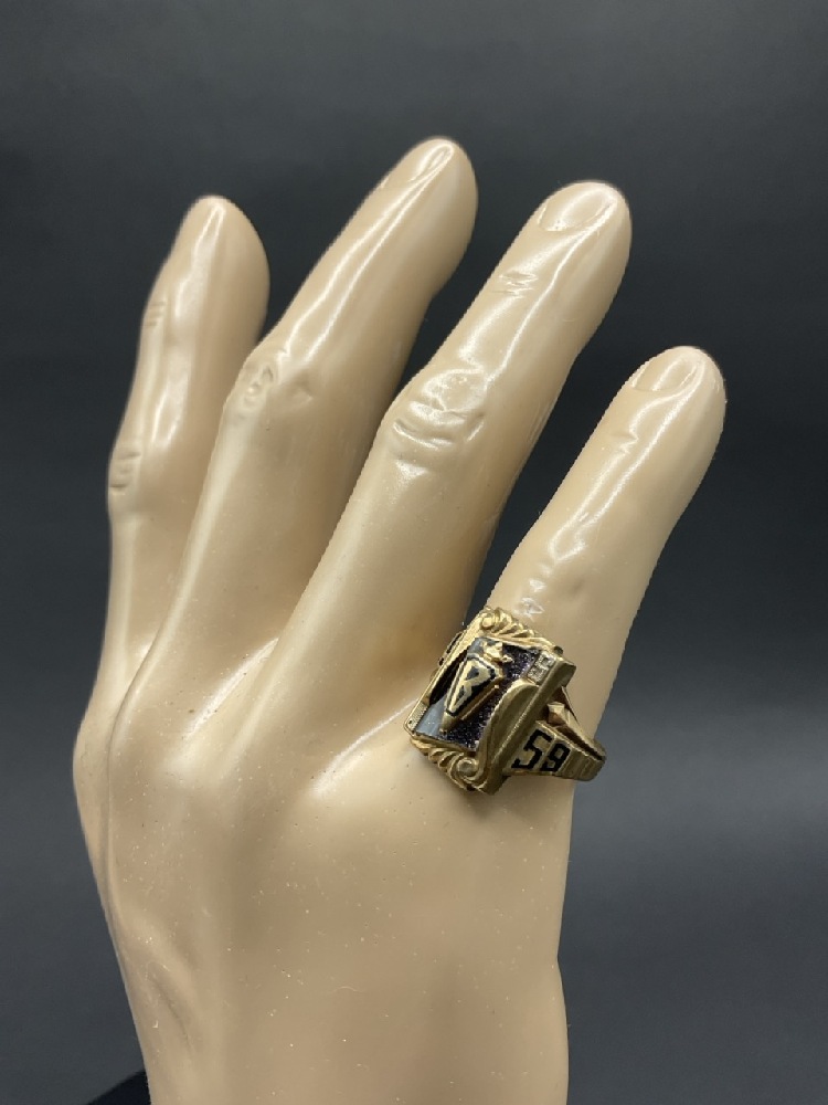 1958 Josten 10K Gold Class Ring with Onyx Stone. Size 12. Tw. 9.50 grams.