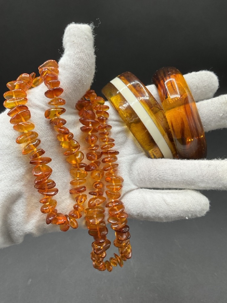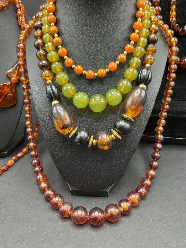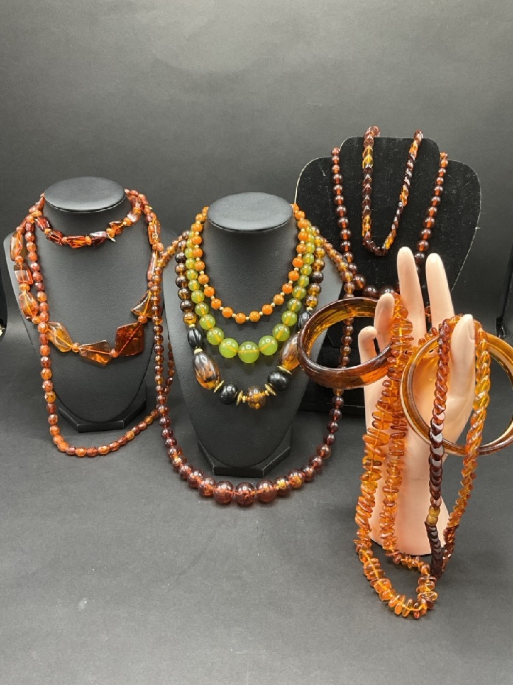 Vintage Plastic, Bakelite & Amber Jewelry Group.