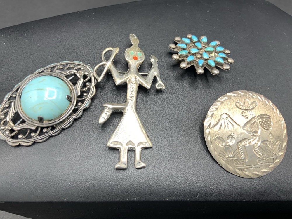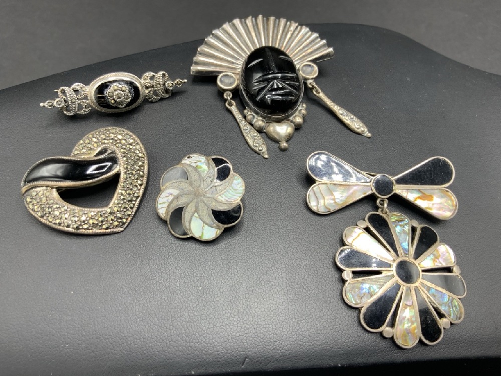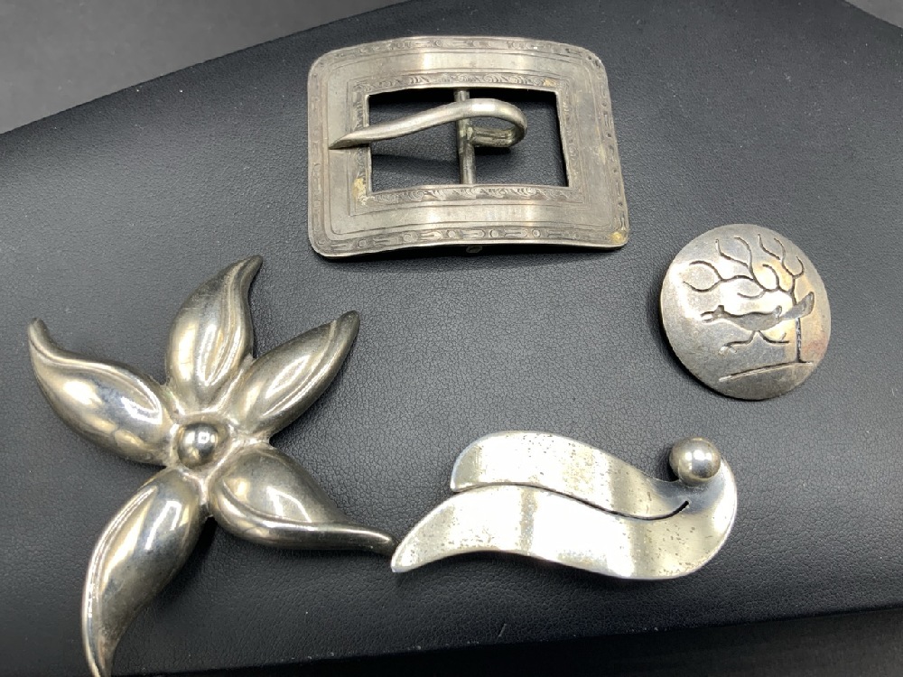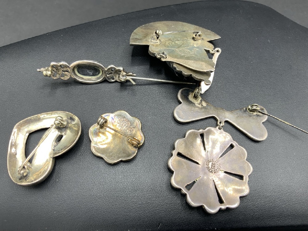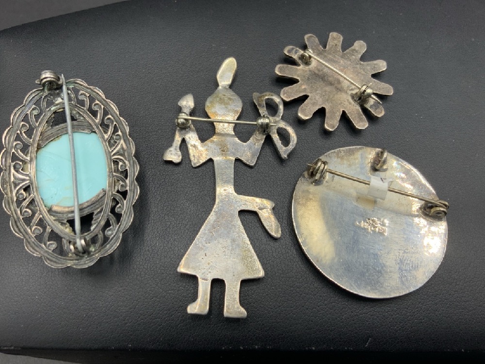 Sterling Silver Pins with Taxco, Garcia etc. As seen in photograph preview.