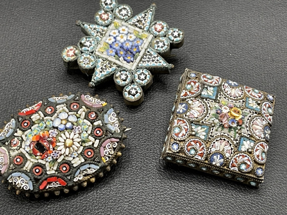 Three (3) Italian Micromosaic Pins.