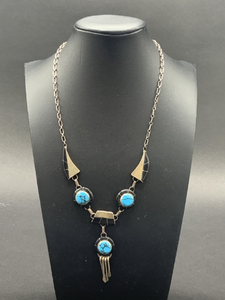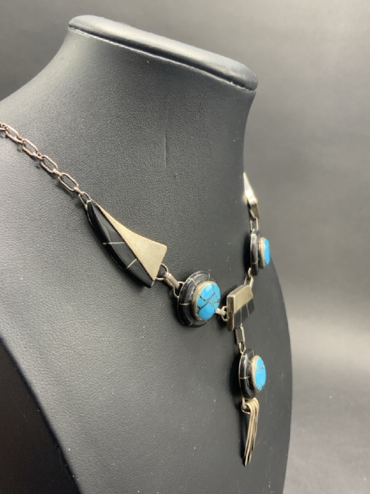Navajo Turquoise and Onxy Necklace.
