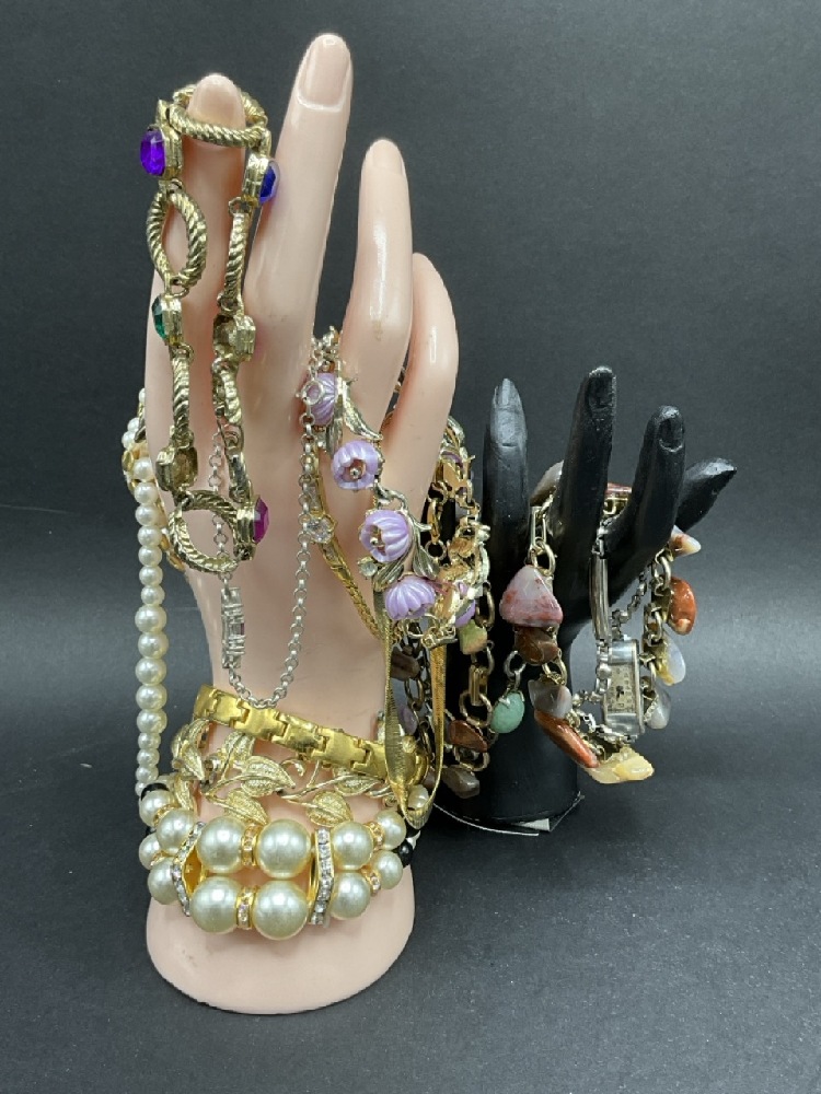 Compiled Vintage Costume Bracelet & Ring Group w/ Sterling, Coro & Avon. As seen in photograph preview.