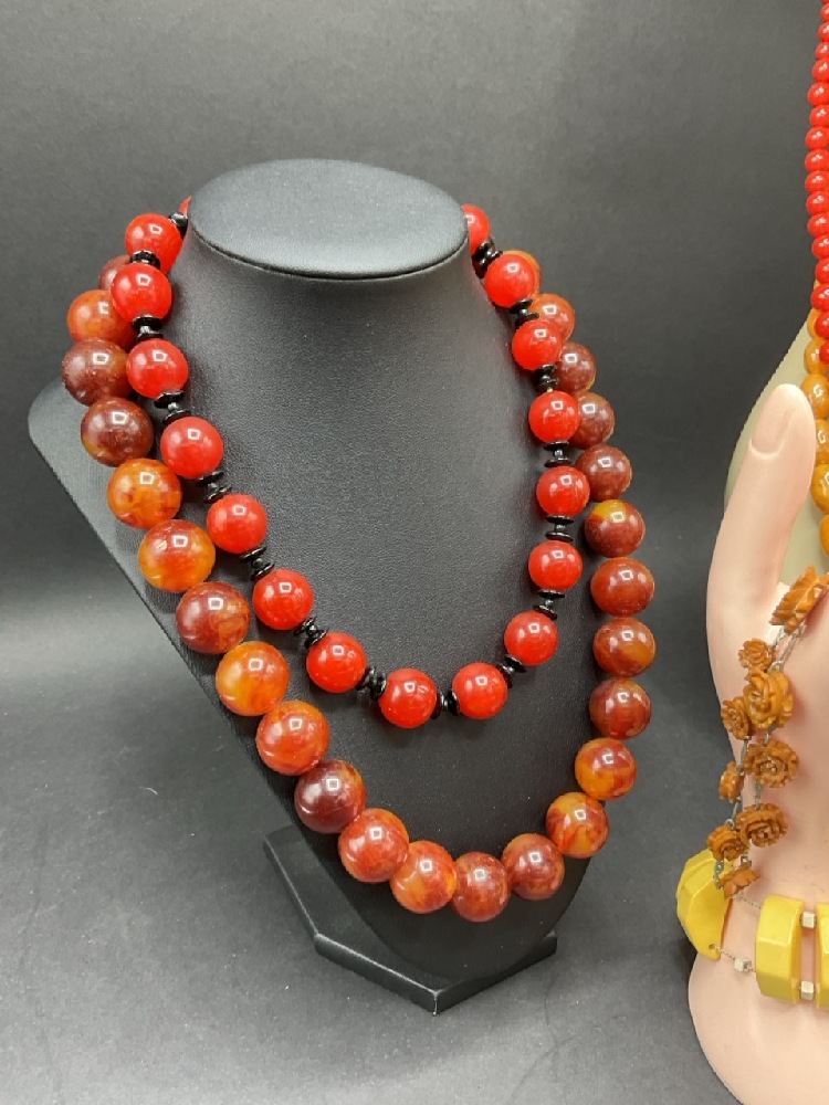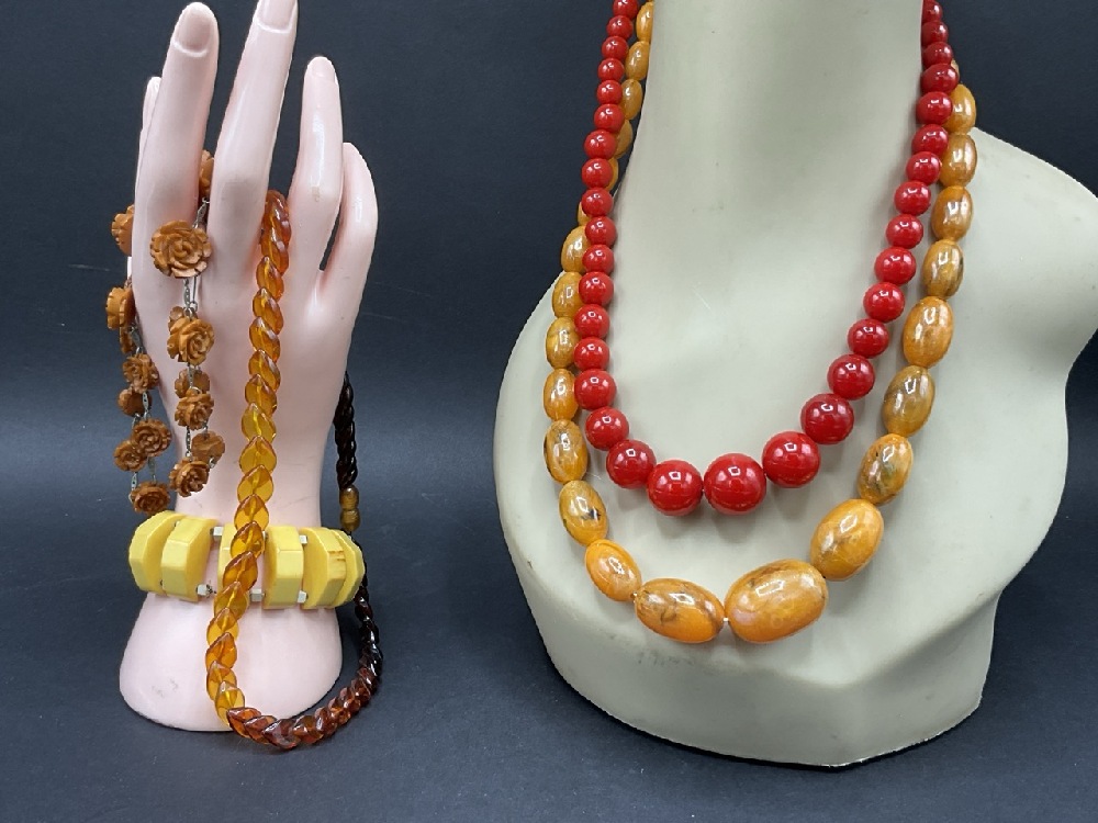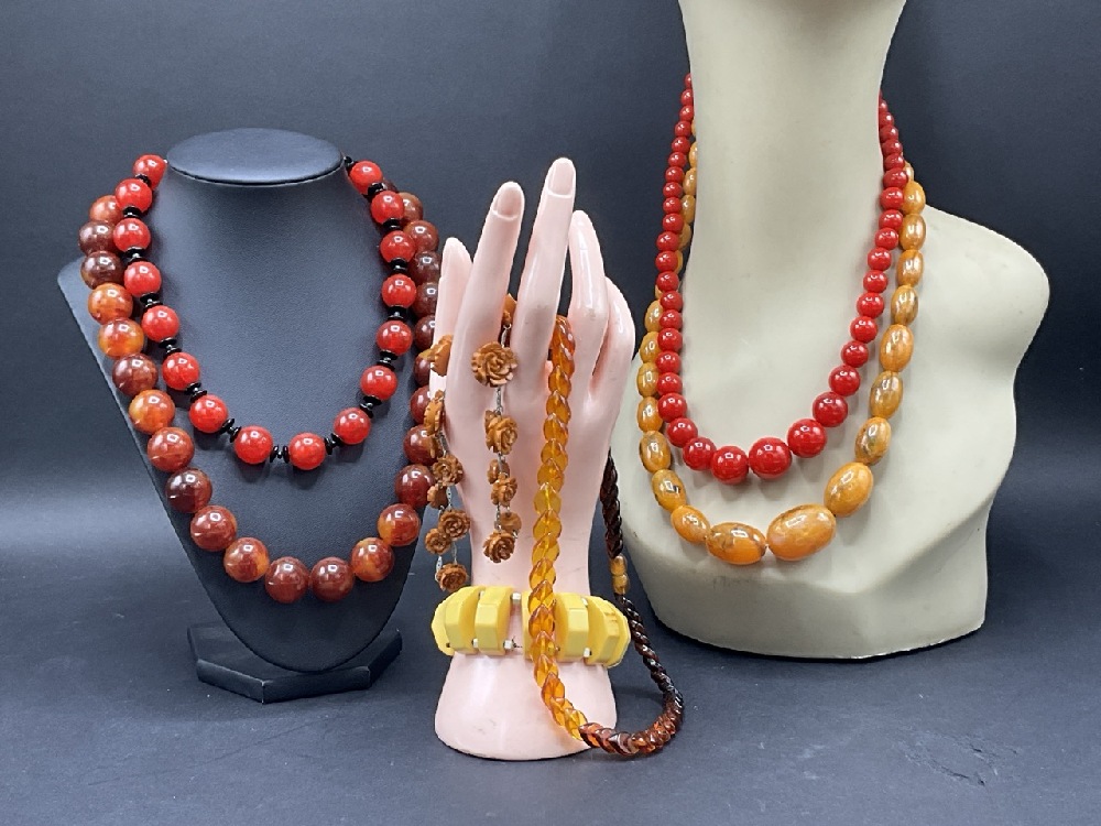 Vintage Plastic, Bakelite & Amber Jewelry Group - (7) Pieces. As seen in photograph preview.