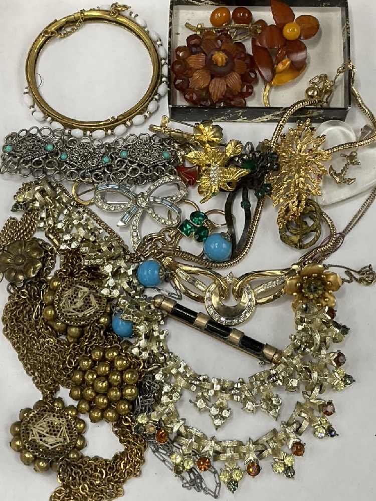 Vintage Costume Jewelry Lot - Miriam Haskell, Coro, Trifari w/ Amber Pieces. As seen in photograph preview.