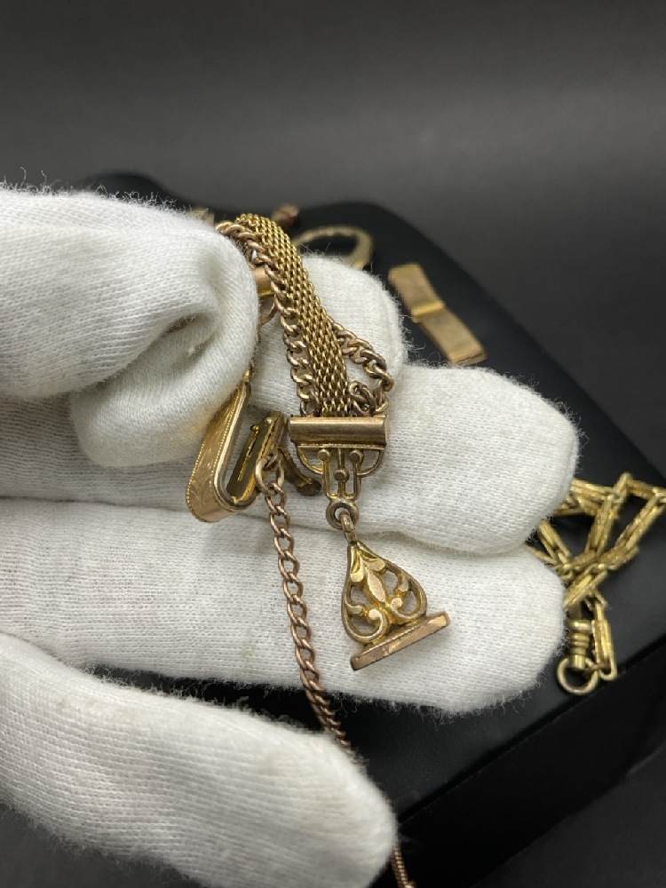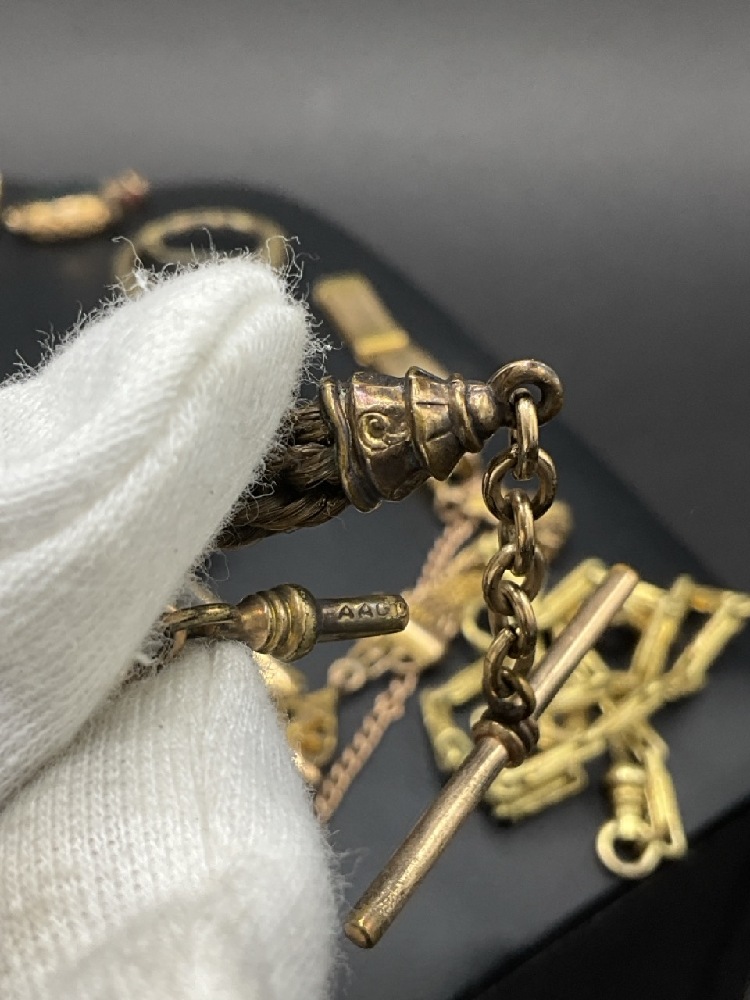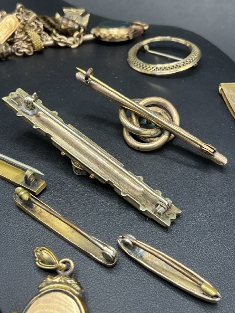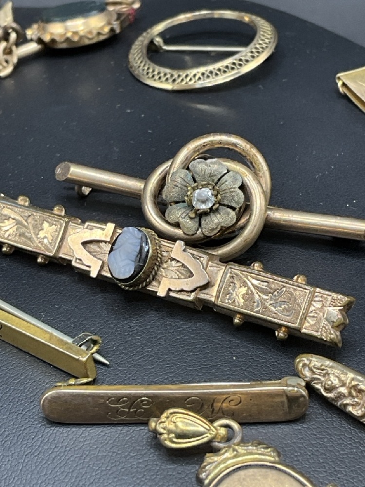 Victorian Compiled Jewelry with Human Hair Bracelet. Goldtone pins etc. As seen in photograph preview.